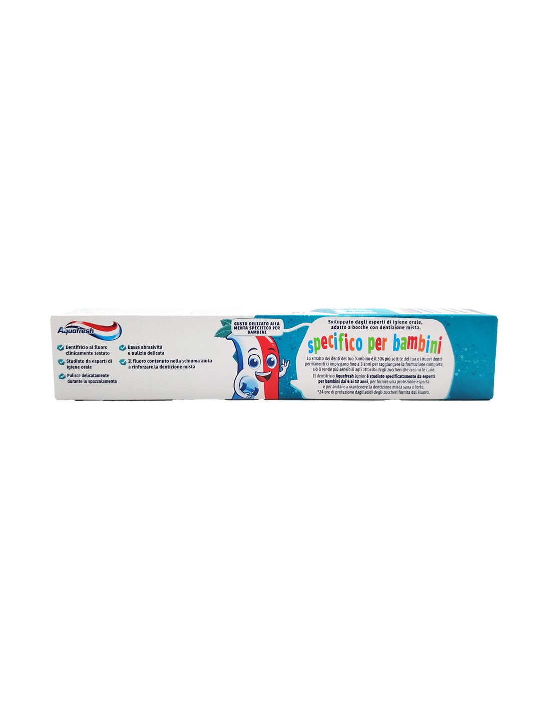 Il dentifricio Aquafresh junior è studiato specificatamente da esperti per bambini dai 6 ai 12 anni, per fornire una protezione esperta e per aiutare a mantenere la dentizione mista sana e forte.